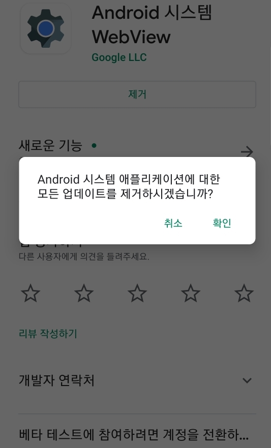 제거를 누른다고 앱이 제거되지 않고, 업데이트만 제거되니 안심해도 좋다.